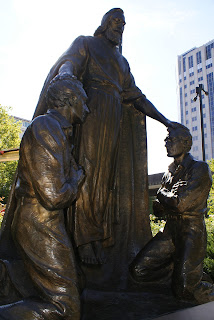 The last day in Salt Lake City was spent following directions to the Fire/Police headquarters in downtown SLC. It was relatively easy to find; however, parking was not. There was a burger joint on the corner up the street, and I parked in their lot, figuring that they were not going to be open for awhile, so they would not mind. I met David Herrmann in the lobby (he was just getting in at 8:30 - and I was early, as I did not know how long it would take me to get there and get parked). He escorted me up to their floor, and we traded patches. He told me that the no longer trade with international fire departments because of something that happened some time ago that gave them some concerns as to how the patches were being used, and Homeland Security issues. In my tour with Mr. Herrmann, I met "the Big Chief" and we had a lovely chat about our Department, where I was from, and the Chief had a map of the US, where I pointed out Harkers Island (trying not to cover the island up in pointing to it). He was impressed about the equipment and members that we had for such a small place. When I left the FD/PD Headquarters, I figured I had better get out of the burger joint parking lot, and found a place on the street; however, it had these strange blue poles for parking meters, and I couldn't figure out how to use them, so moved on a couple of blocks where there was parking with no "meters." A picture of the parking meter "station" and the "meter" in the background is the last picture in the series. I walked about 5 blocks to Temple Square, and Mr. Michael Nelson, if you are monitoring this blog, these pictures are for you...... The Temple grounds were very interesting, and I went into the Tabernacle, where the Mormon Tabernacle Choir sings, and a public church that is open to the public. In the welcome center, there was a cut-away model of the inside of the Temple. I took the best pictures that I could considering that I was shooting through glass with reflections all over it. There were guides all over the place that were interested in answering questions; however, the questions I wanted to ask they would not have received too well, so I moved on to just a self-guided tour of the area. On the way back to the car, I got to see the trolly that still operates in downtown SLC, and a Greek push cart selling lunchtime food. I had no problem finding my way out of the city and back to my hotel. Gassed up the car one last time, and am in the process of repacking all my stuff in readiness to head out tomorrow morning at about 5:15 a.m. to give me plenty of time to get to the airport, drop off the rental car, and get my boarding pass. I have pre-checked in, so once I get my boarding pass, my bag is paid for, and off I go through security....yuch. Have taken almost 2,800 pictures, and the nice thing about doing the blog every day, is that it forces me to download my pictures, spot (literally) check them, and get them on the blog. It takes a whole lot less time to do 200 to 300 pictures at a time, than to wait until I get home and have to process 3,000.